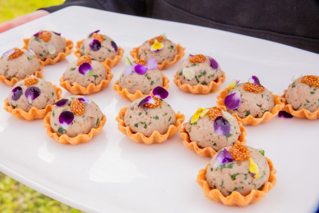 Les convives arrivaient vers 15 :30 h. et visitaient la ferme, en compagnie du propriétaire. Par la suite, un apéritif, composé de vin naturellement fermenté, leur était offert sous le chapiteau, accompagné de bouchées de rillette d’agneau.